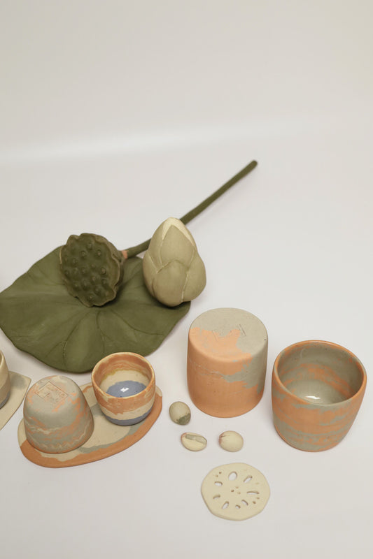 summer in Hue collection - sunset inspired small cup #2 (pink & gray marbled, far right on all photos)