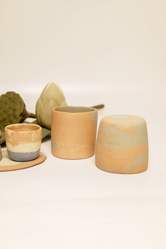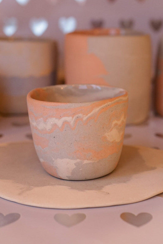 summer in Hue collection - sunset inspired small cup #2 (pink & gray marbled, far right on all photos)